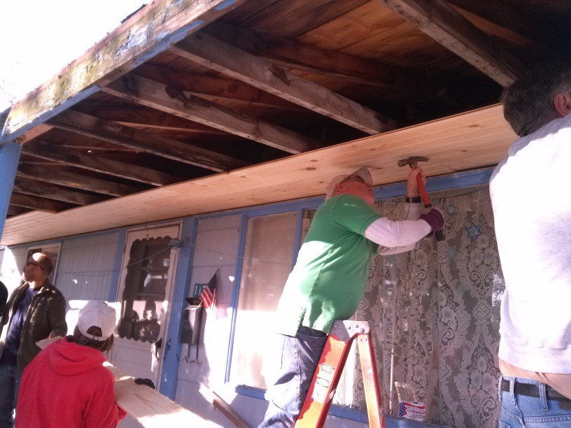 We heard about a Vera's porch Tom Johnson who's Life Together Group had been working with her for some time. The porch was leaking causing a leak into the house causing damage to both the interior and the porch.